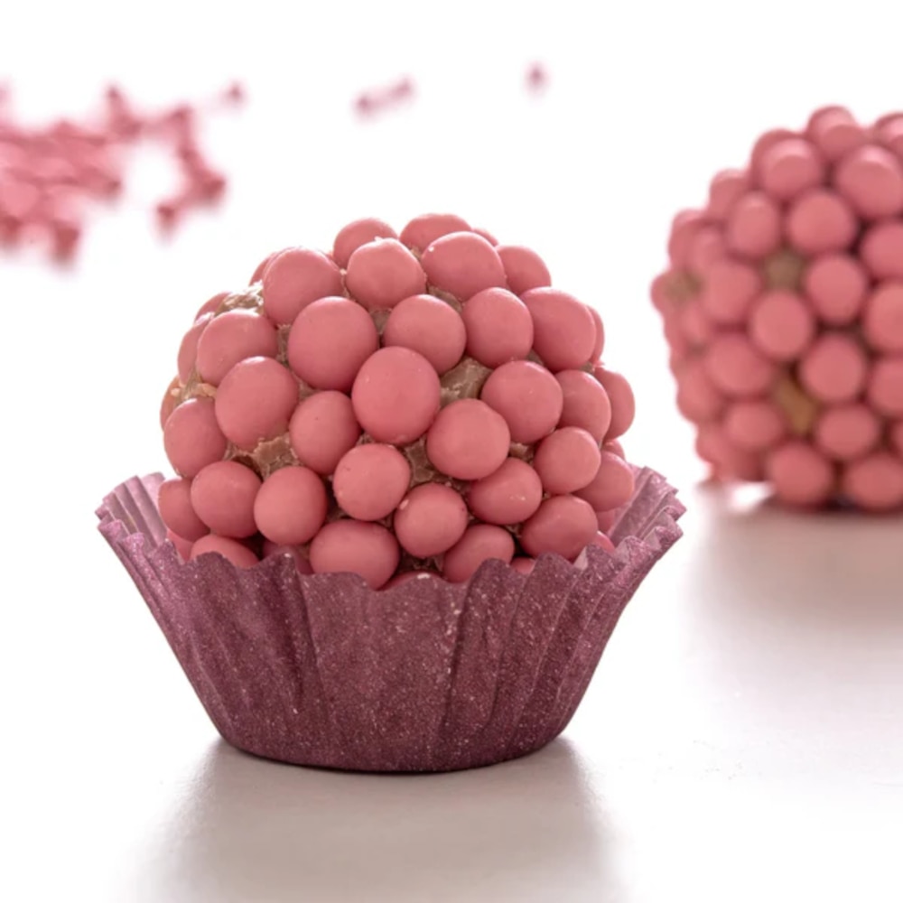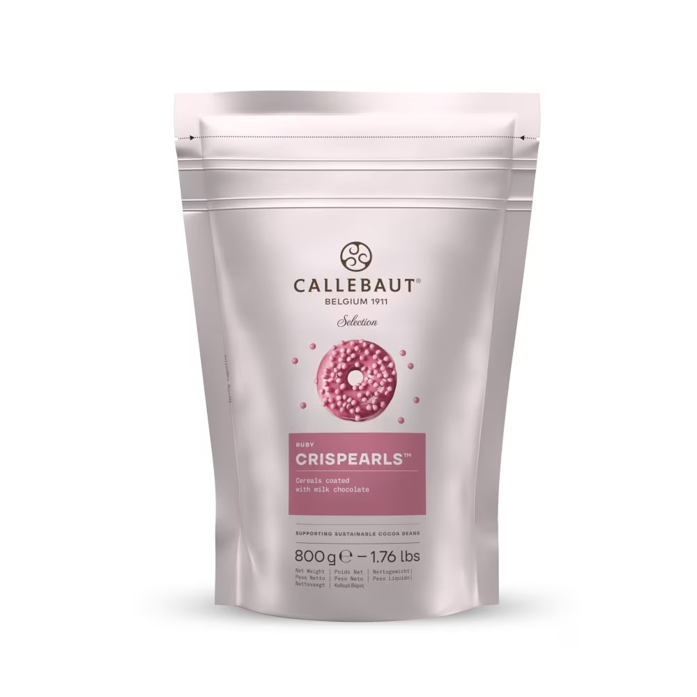 Callebaut Ruby Chocolate Crispearls™ are tiny pearls with a crispy heart of toasted biscuit coated in rich Callebaut Ruby Chocolate. They bring an exciting crunch and intense chocolate flavor to any dessert, adding that extra touch of indulgence. With their glossy finish and deep cocoa taste, they are perfect for enhancing the look and texture of pastries, cakes, and frozen desserts.