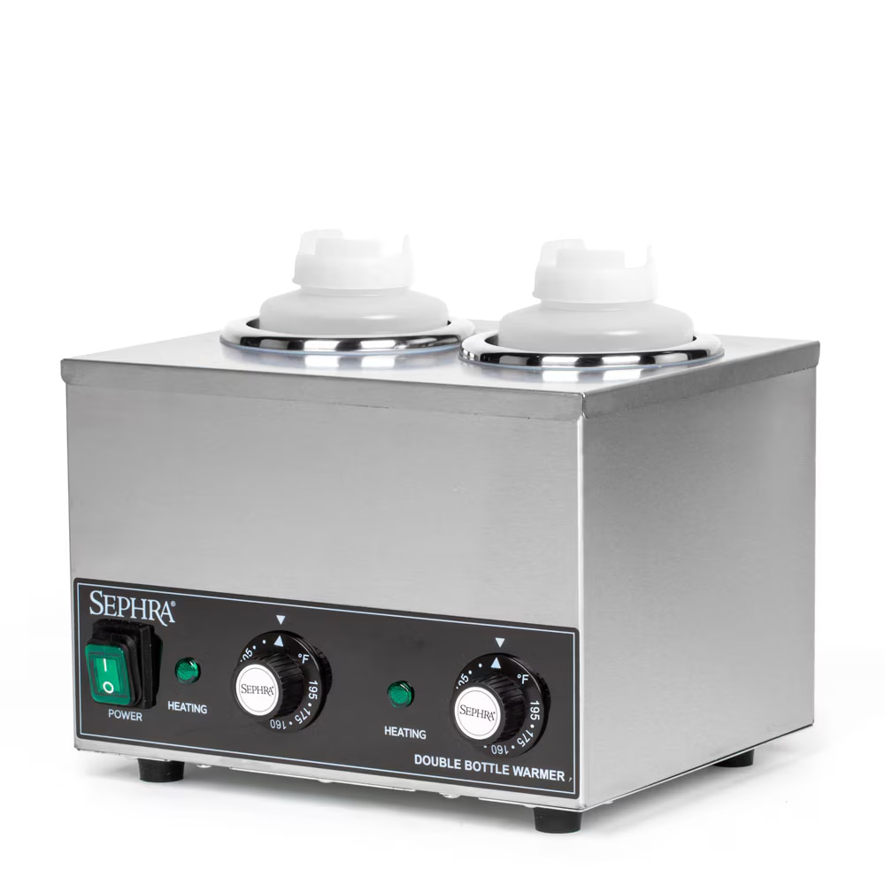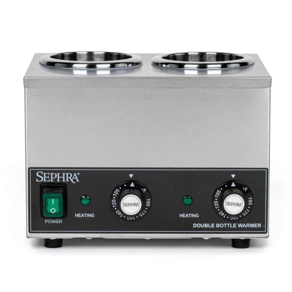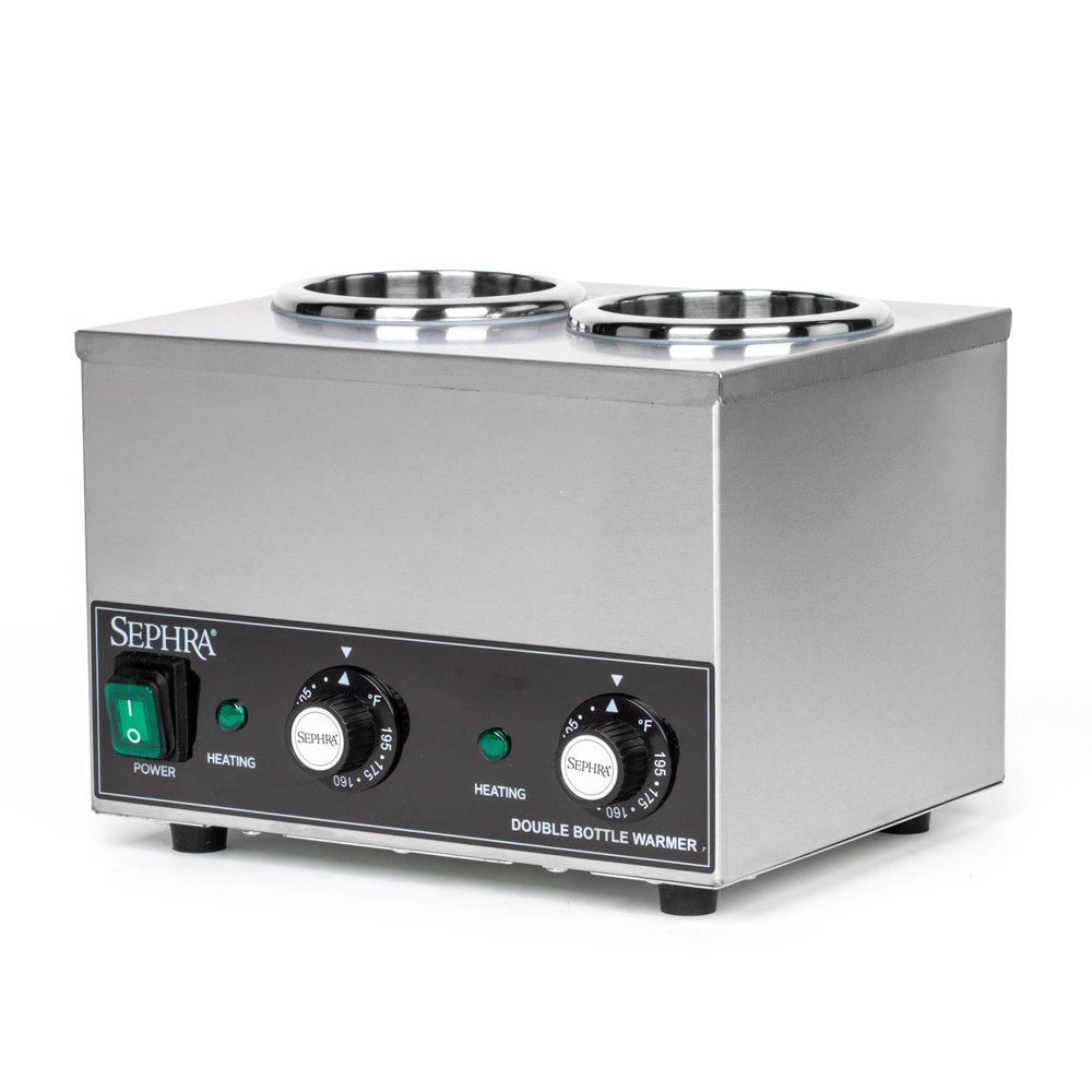 Sephra's dry well Double Chocolate & Sauce Bottle Warmer is a convenient way to keep chocolate, sauces and other toppings at a certain temperature, in a safe, servable liquid form for quick and easy dispensing.