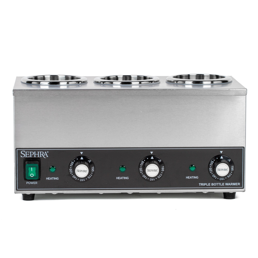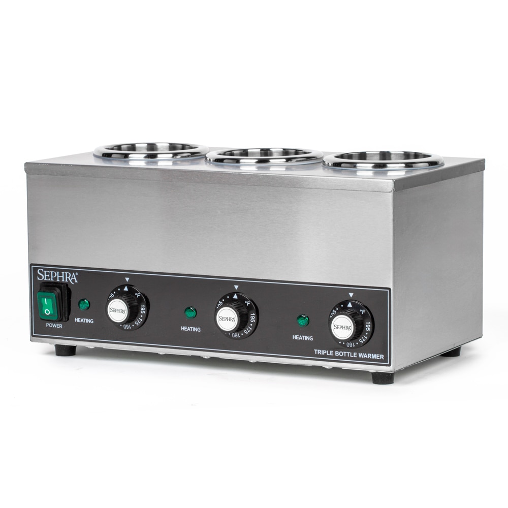 Sephra's dry well Triple Chocolate & Sauce Bottle Warmer is a convenient way to keep chocolate, sauces and other toppings at a certain temperature, in a safe, servable liquid form for quick and easy dispensing.