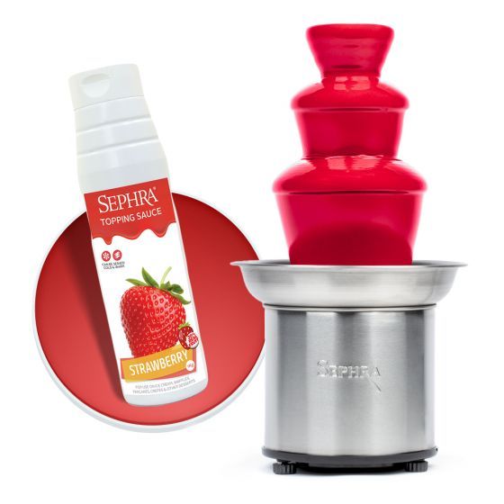 Does it fountain? Yes it does! We tested the Sephra Strawberry Topping Sauce using the Sephra Select Home Fountain. We used 2 bottles and added 50ml of water - and voila! The Strawberry Sauce fountained great with the heat on.